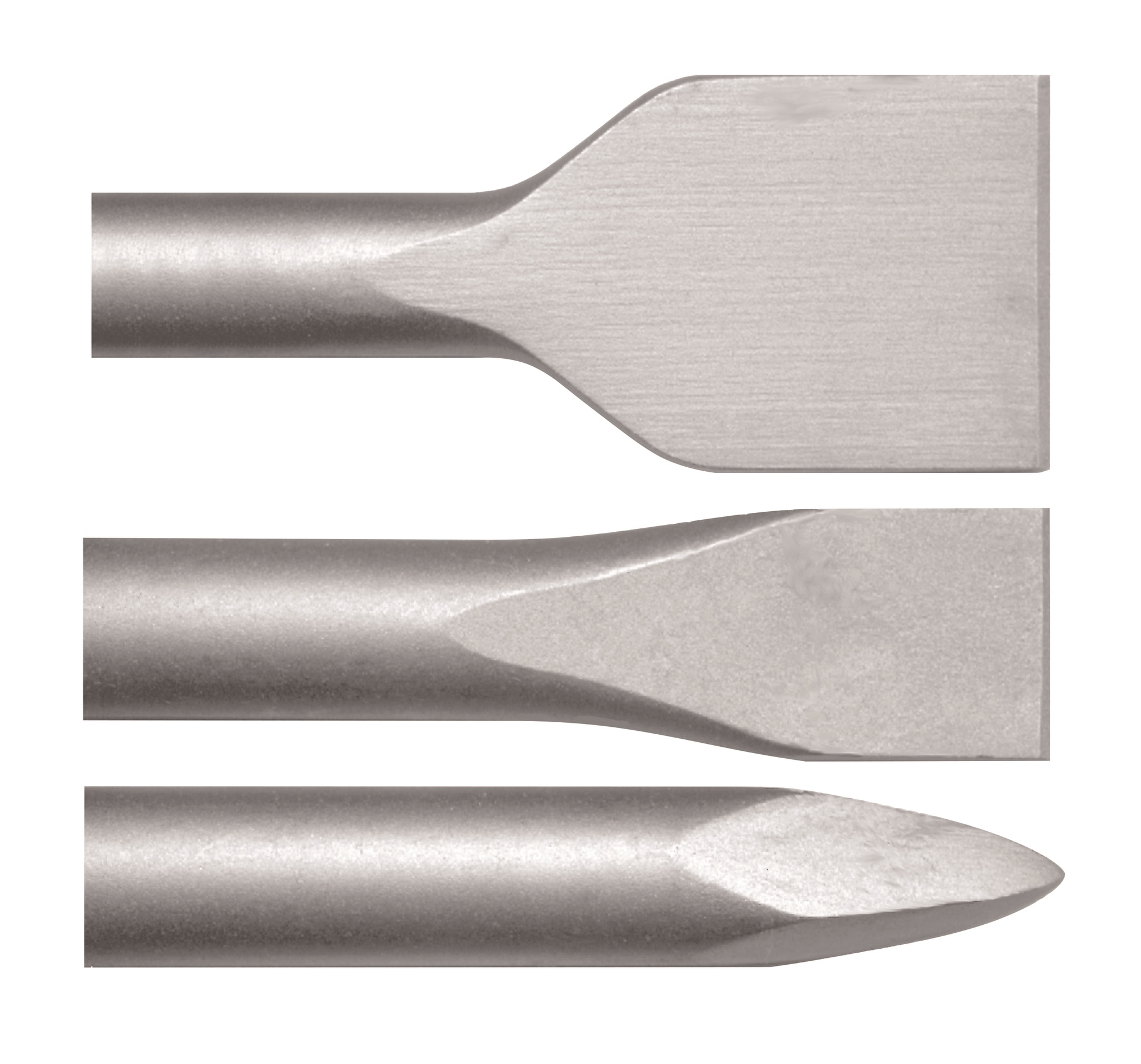 3-teiliges Set bestehend aus einem Spitz-, Flach- und Spatmeißel. Ideal für allgemeine Meißel- und Abbrucharbeiten.