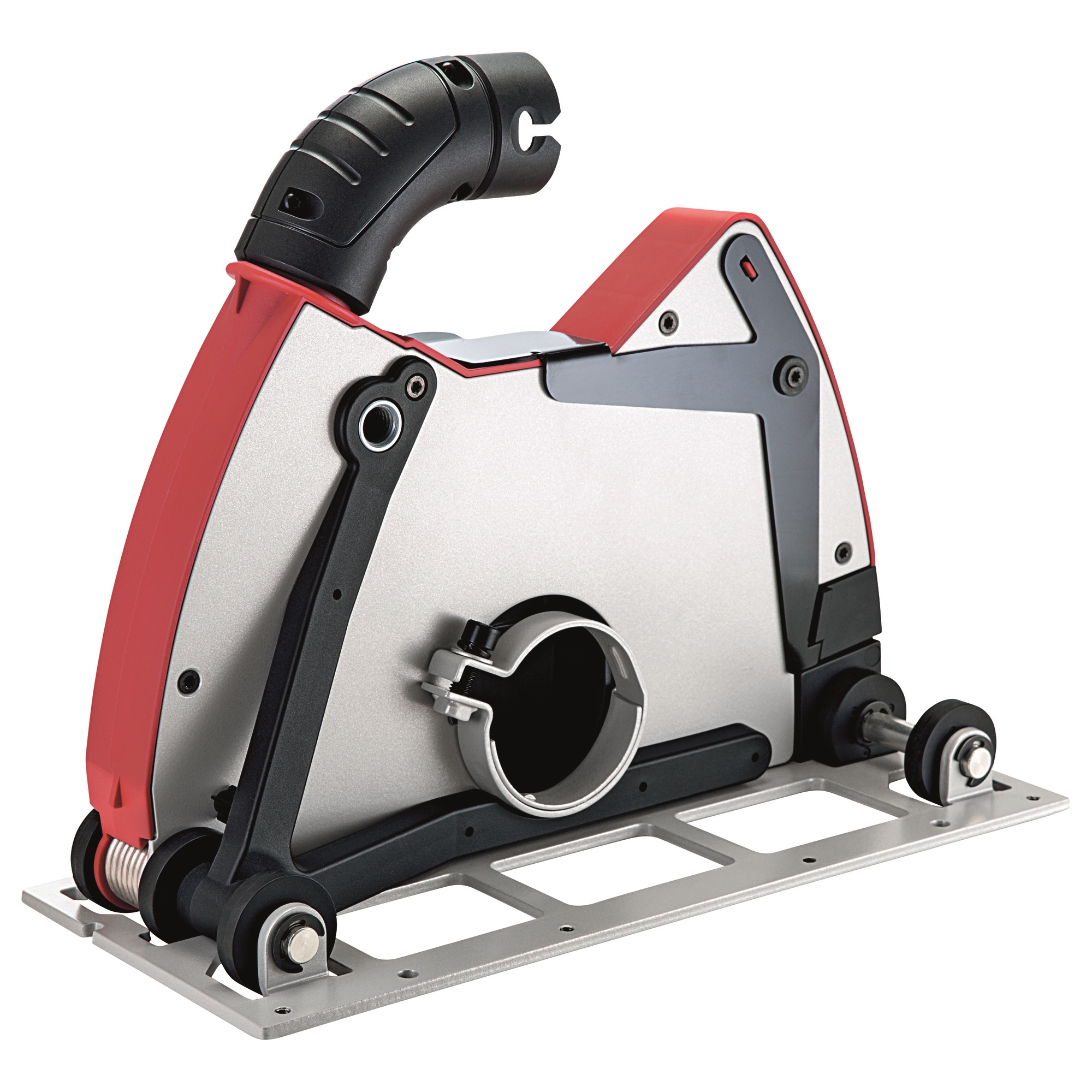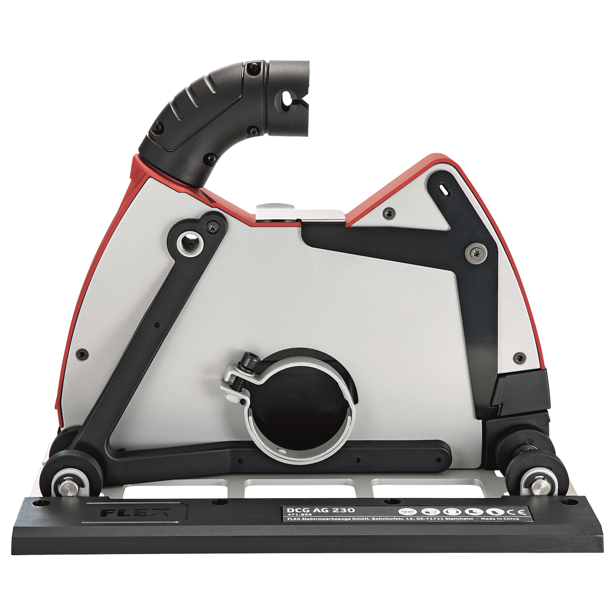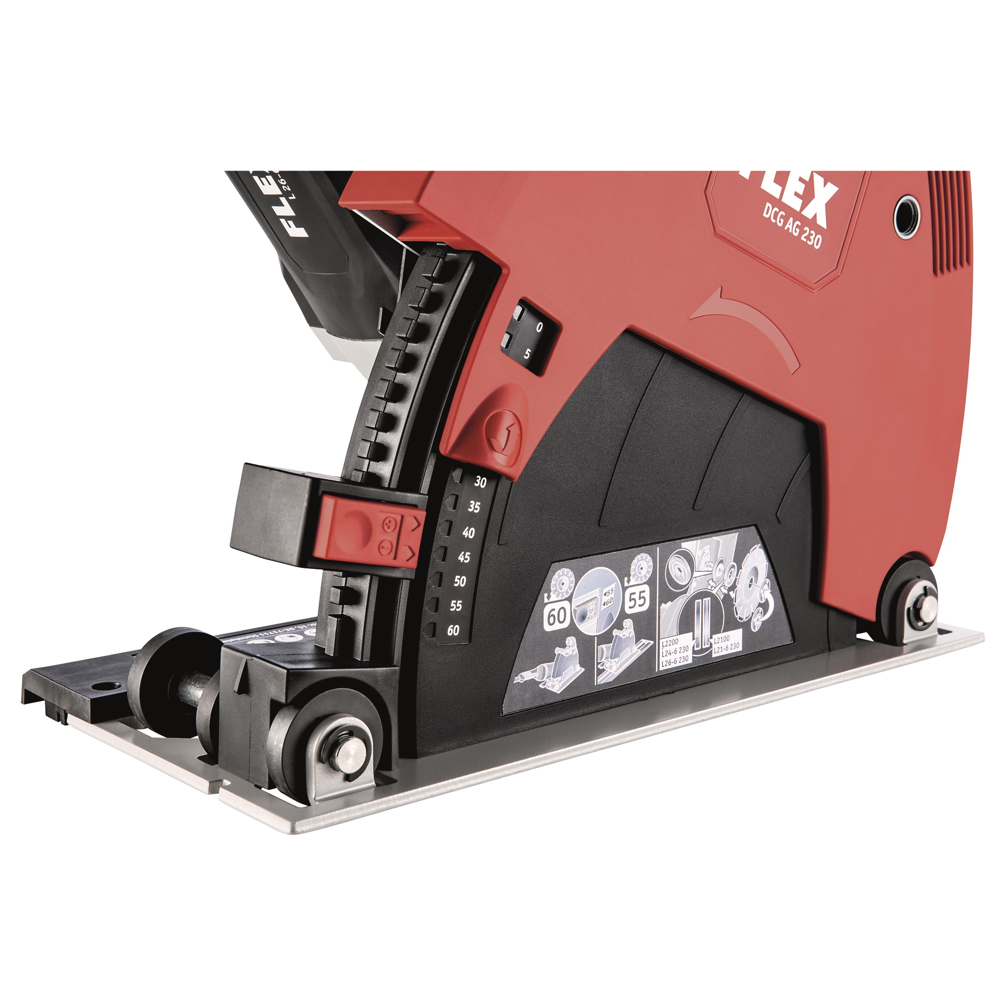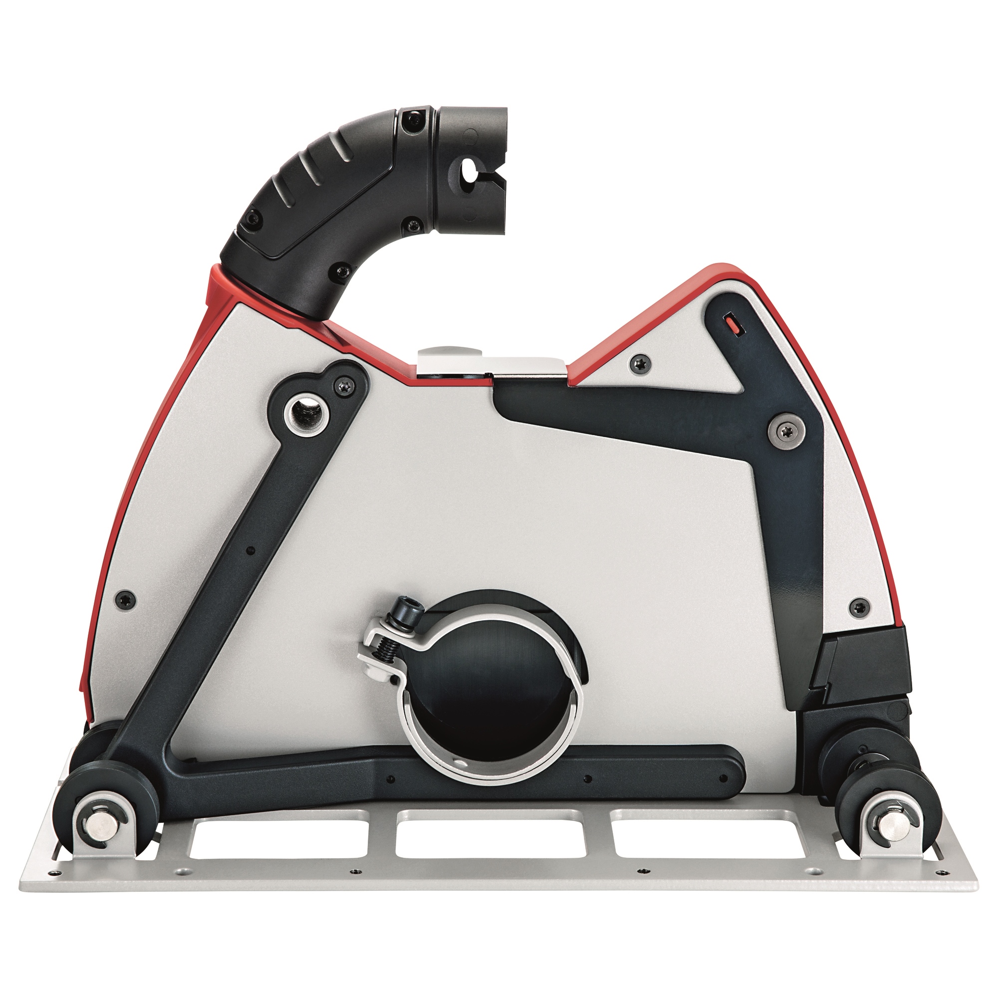 Trenn-Absaughaube mit effizienter Staubabsaugung für exakte Schnitte bei Arbeiten mit Diamant-Trennscheiben in Verbindung mit 230 mm Winkelschleifern. Extrem stabil, keine Verwindung durch das seitliche Gewicht des Winkelschleifers, dank Stabilisator-Element. Bodenplatte mit Rollen für einen einfachen Vorschub, Seitenhandgriff wahlweise links oder rechts montierbar. Inkl. Sauganschluss für FLEX Clip-System und Adapter für Führungsschiene. Tiefenanschlag mit Skala zur Voreinstellung der Schnitttiefe für die Verwendung mit oder ohne Führungsschiene. Maximale Schnitt-Tiefe 60 mm.