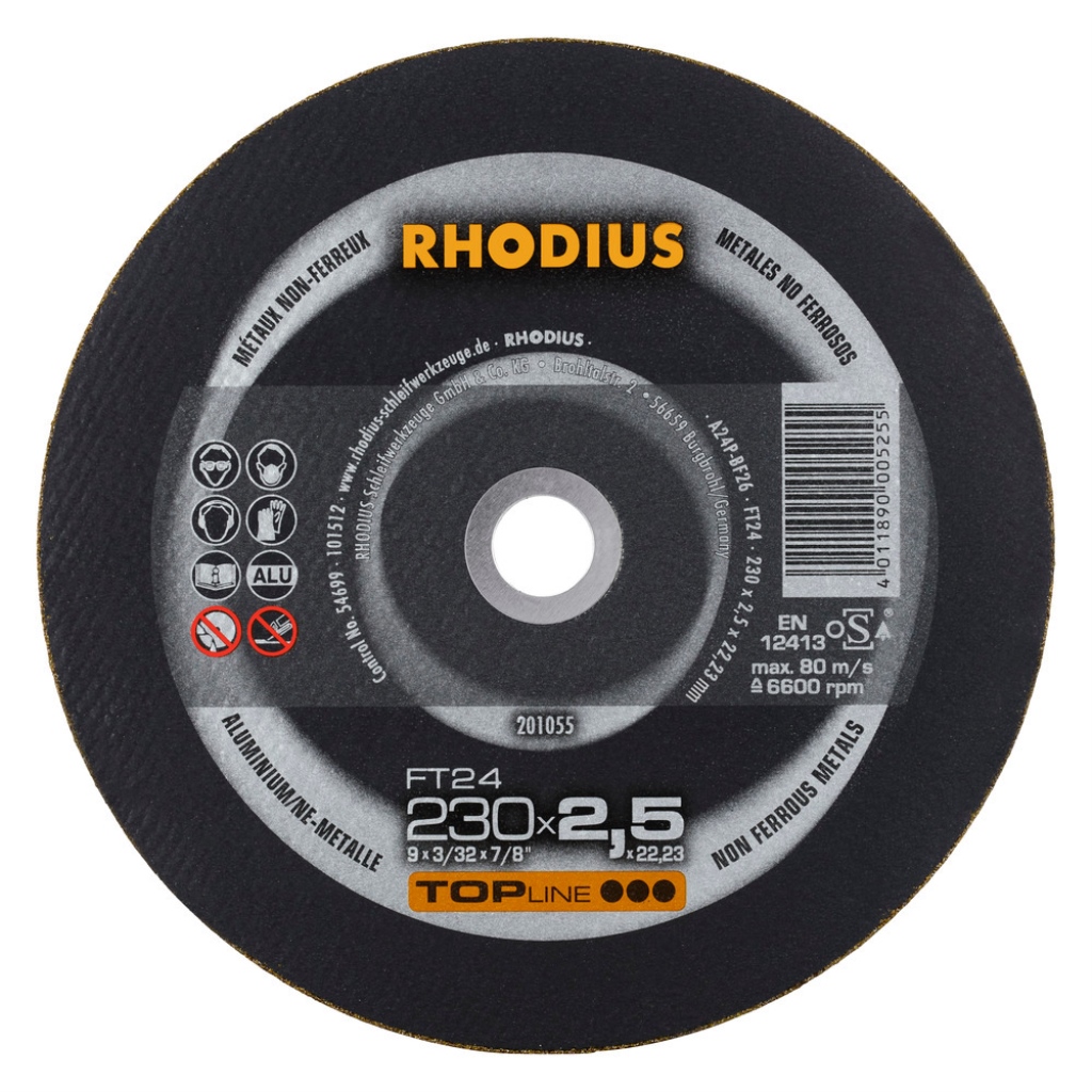 Freihandtrennscheibe mit speziellen Füllstoffen. Sie verhindern auch bei Dauereinsatz ein Zusetzen der Scheibe. Hohe Schnittgeschwindigkeit, kühler Schnitt, kein Zusetzen. Materialeignung: NE-Metalle.