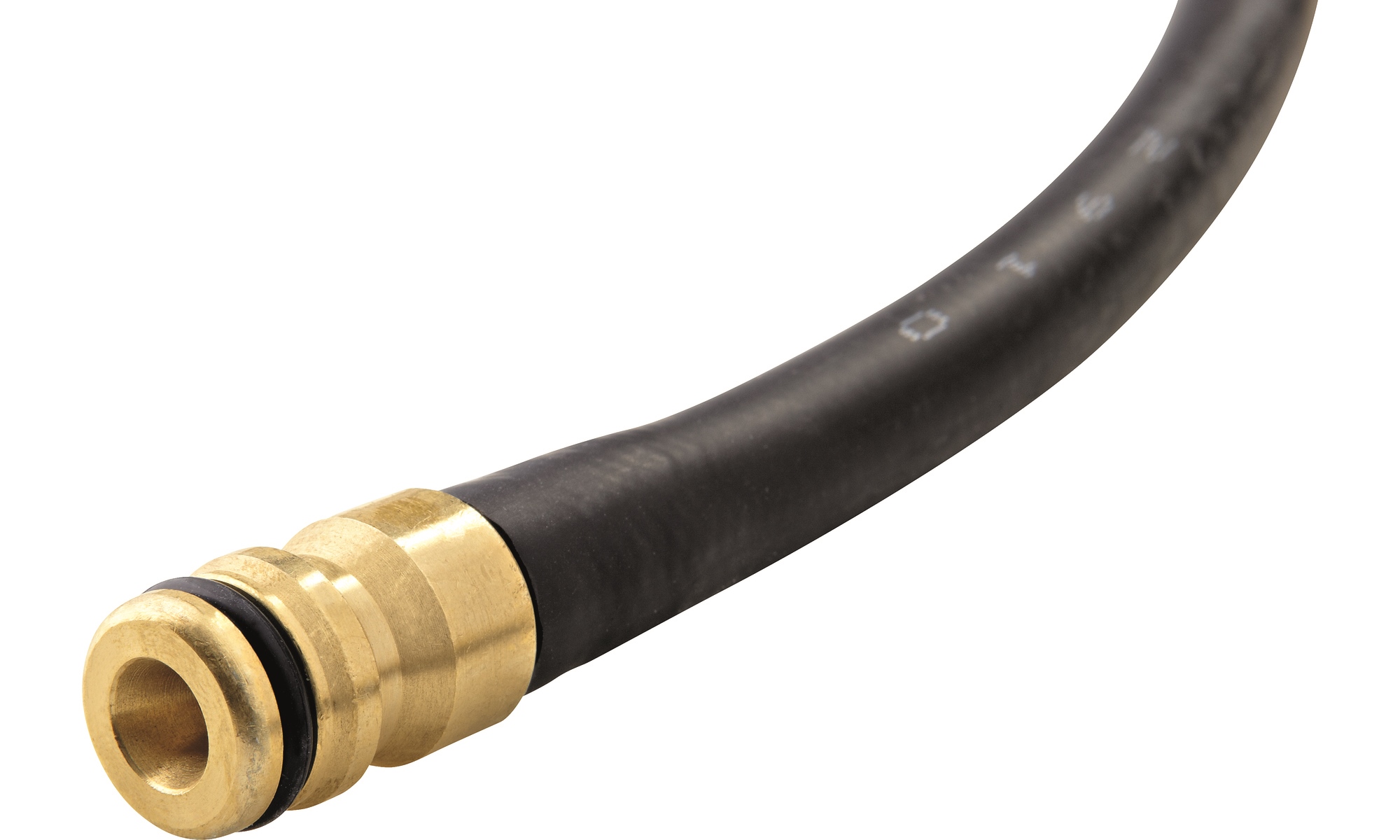 2 m Spezialschlauch: benötigt keine zusätzliche Schlauchsicherung. Erhöht die Flexibilität, reduziert das Gewicht und vermeidet Verletzungen durch Schlauchschellen