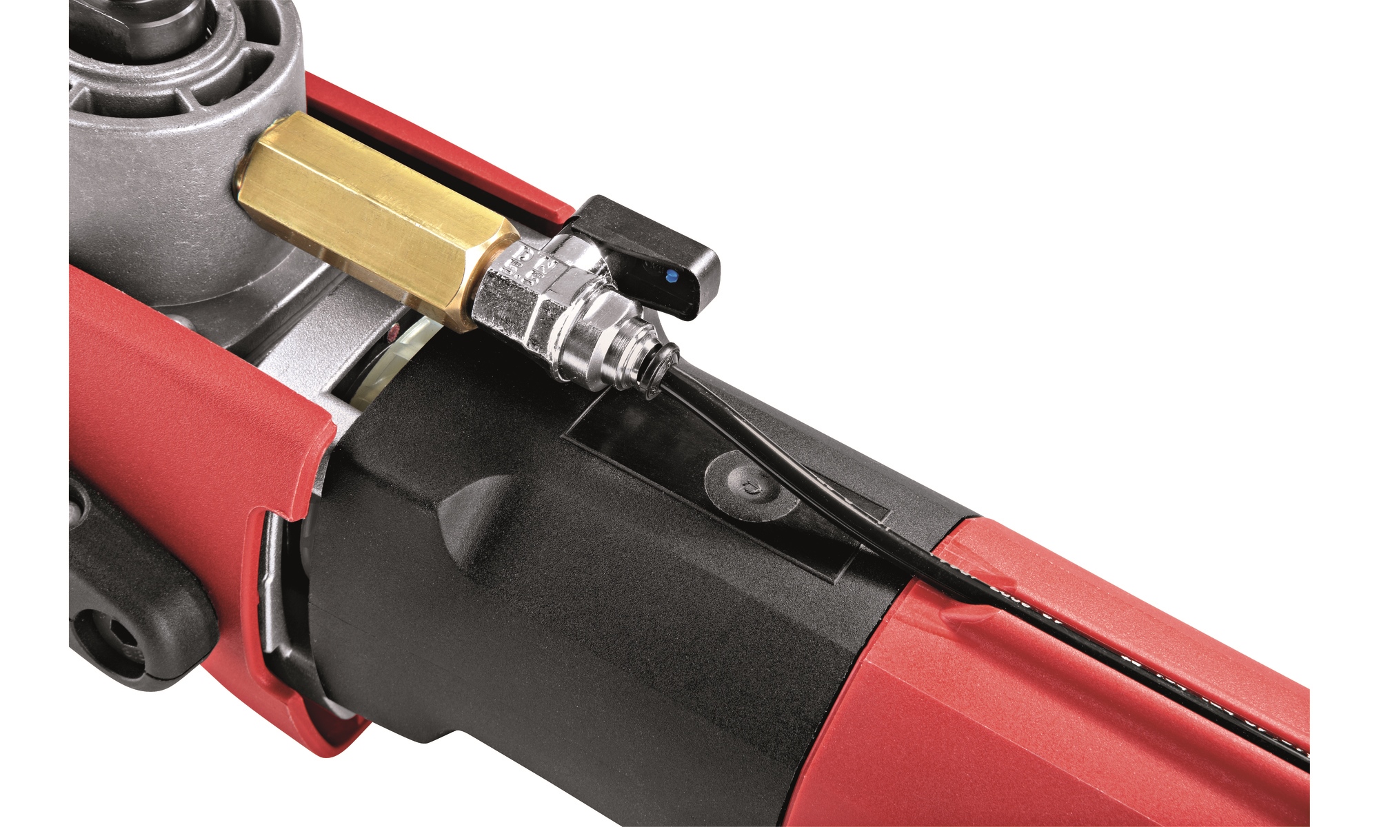 Die Wasserzuführung und -regelung ist unter dem Gehäuse positioniert, dadurch einfache Bedienung und exakte Dosierung. Es entsteht ein freier Griffbereich direkt über dem Polierteller