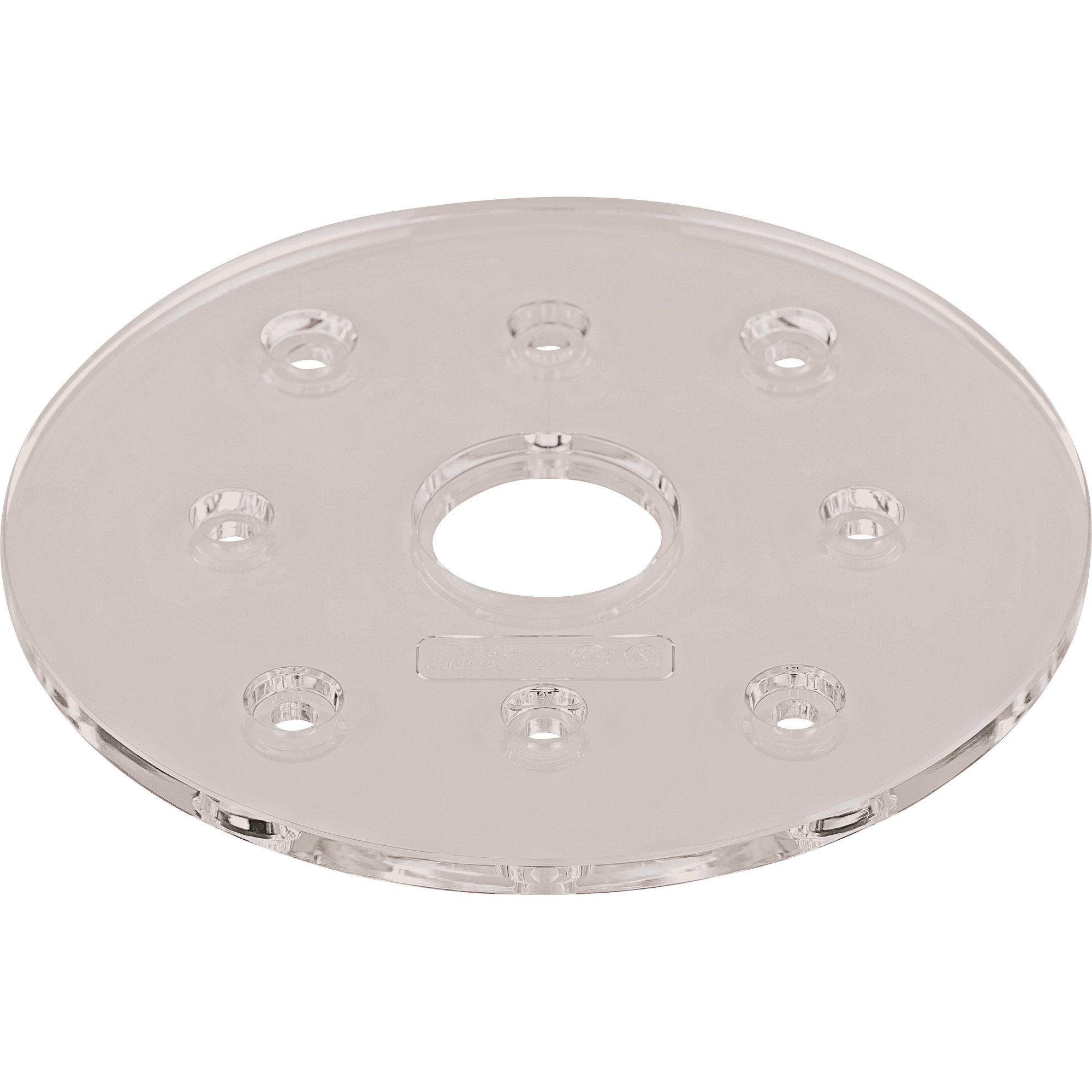 Aus Plexiglas für den Fräskorb. Die Grundplatte bietet eine größere Führungsfläche der Kantenfräse.