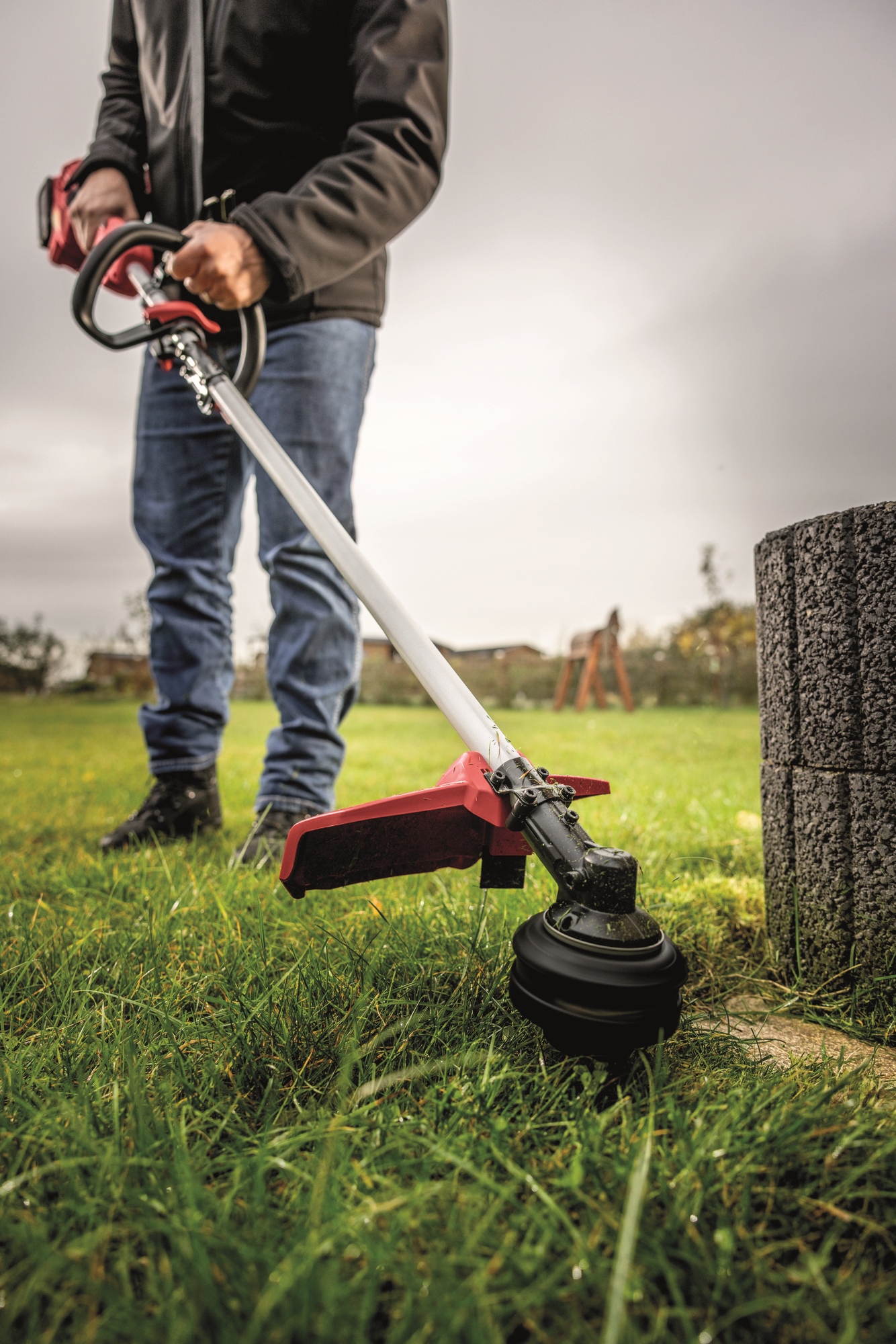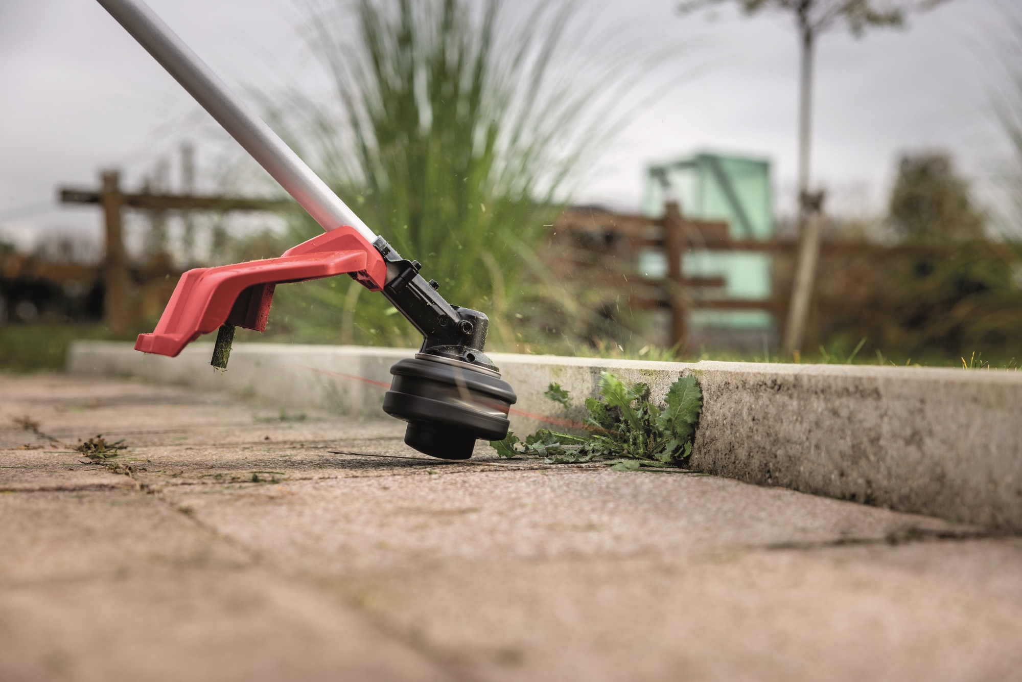 Tête de coupe avec "Easy load" - réglage simple de la longueur du fil avec mécanisme d'alimentation automatique. Avec coupe-fil et protection contre les éclaboussures