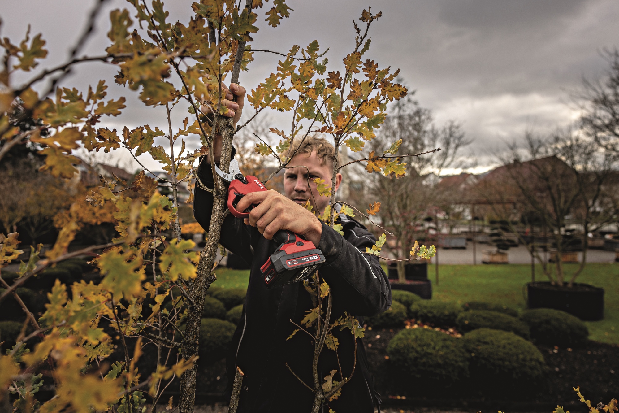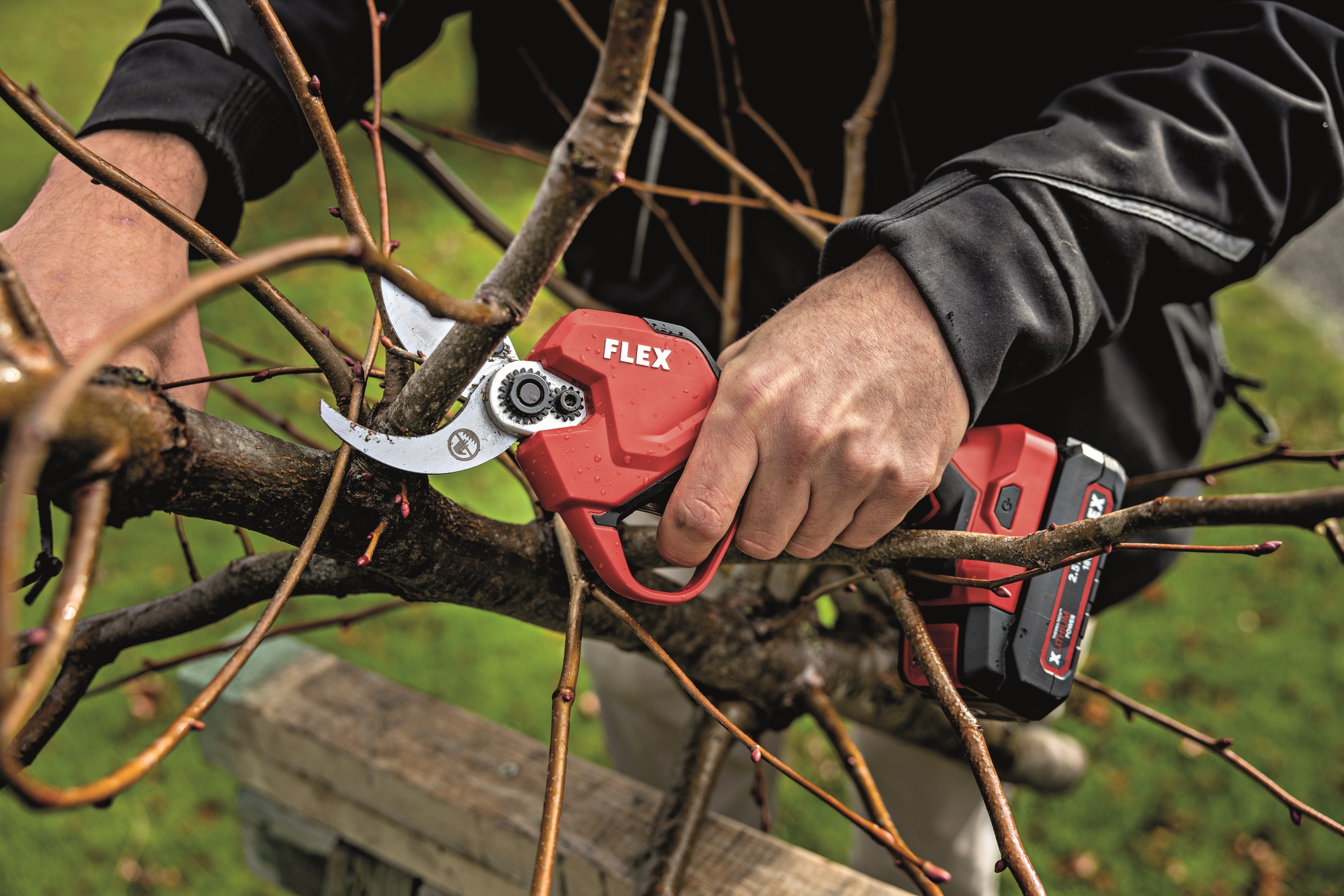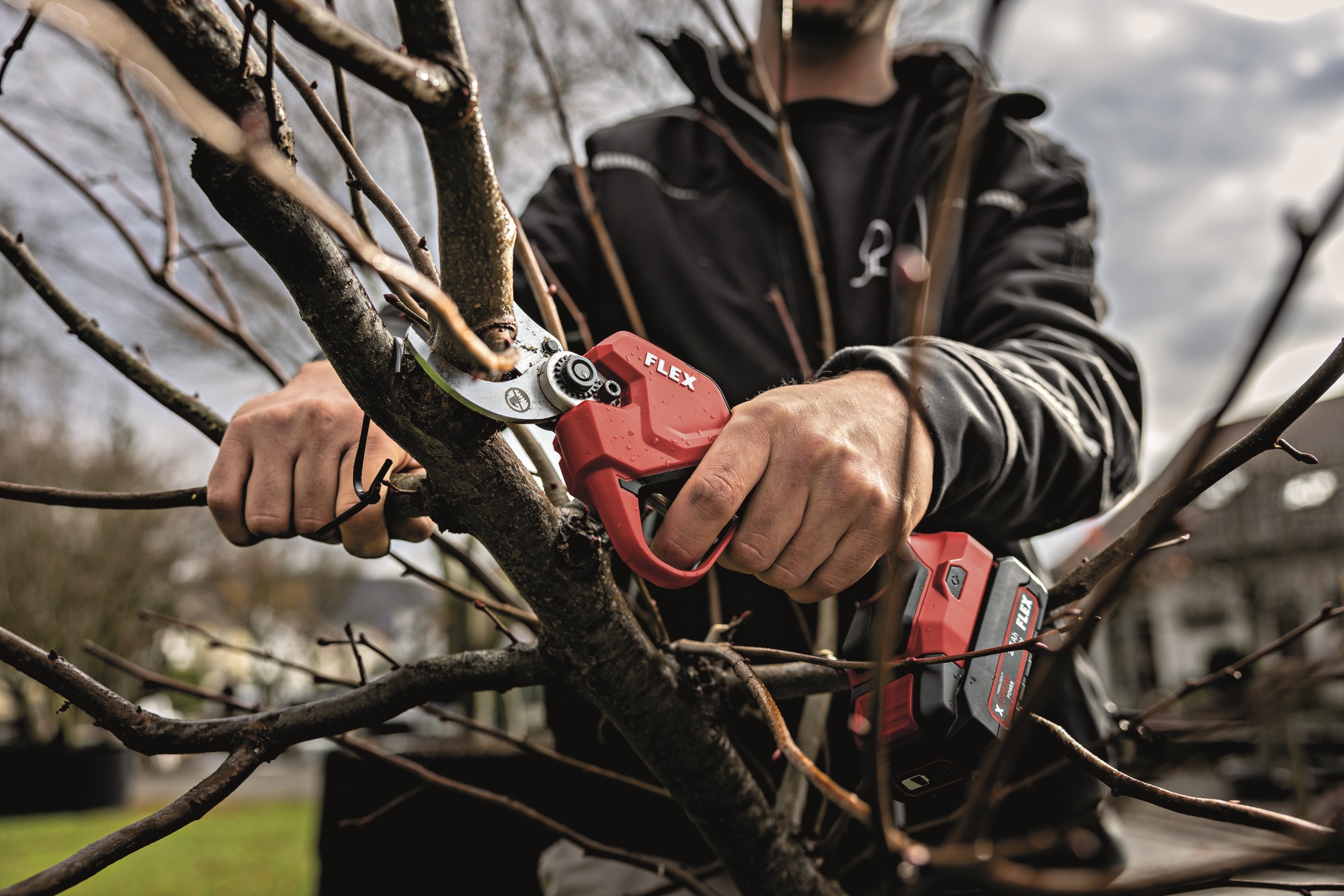Sécateur à batterie puissant pour le jardinage, la viticulture, l'arboriculture fruitière ainsi que l'agriculture et la sylviculture, avec une capacité de coupe de 35 mm.