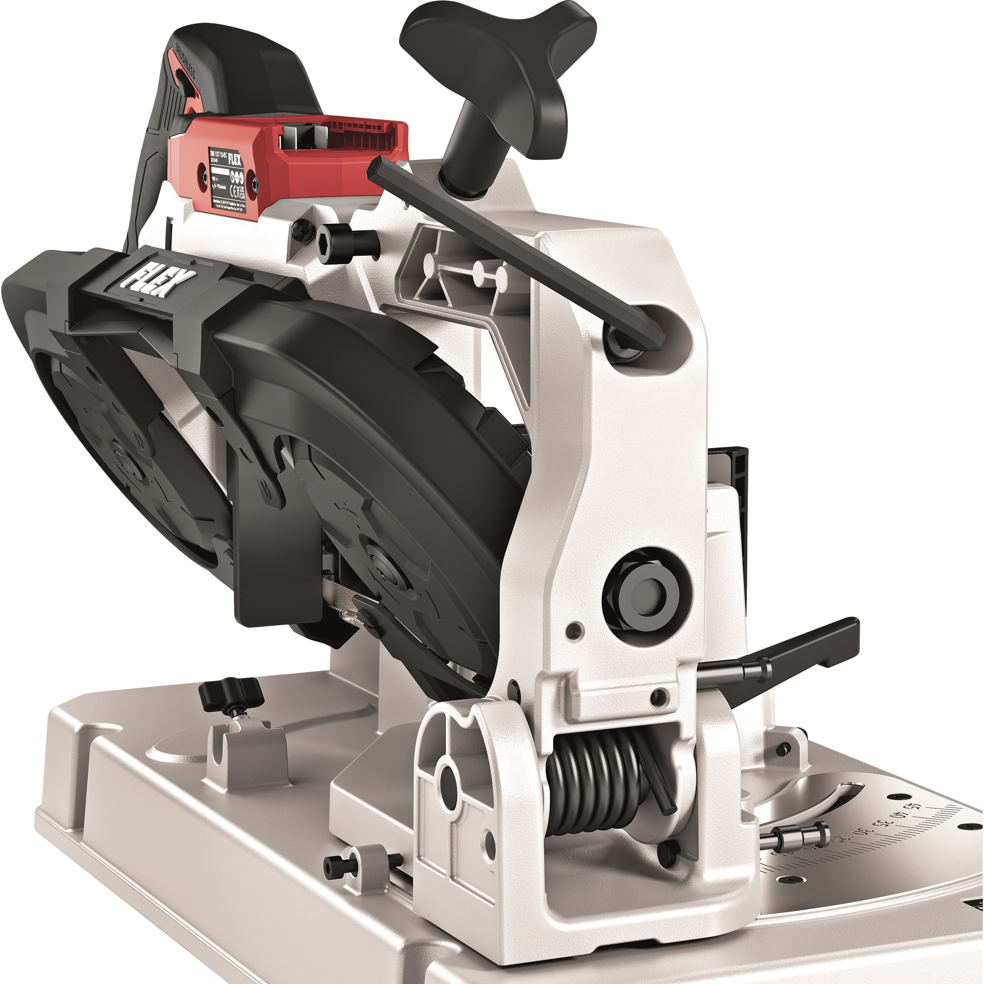 Pour utiliser la SBE 127 18.0-EC comme scie à ruban semi-stationnaire. Montage simple avec un grand bouton rotatif et un levier de blocage pour une fixation rapide. Le bras est soutenu par un ressort et supporte le poids de la scie à ruban. Échelle graduée bien lisible de 0 à 45°. Comprend un étau stable avec des mâchoires d’insertion pour les tubes et autres profilés à surfaces fragiles. Avec butée de longueur flexible des deux côtés, jusqu’à 310 mm à droite et 380 mm à gauche. Ainsi, le travail avec la scie à ruban sur batterie et la table est encore plus précis et plus facile. Si nécessaire, la table peut être montée sur le socle WB 110-260.