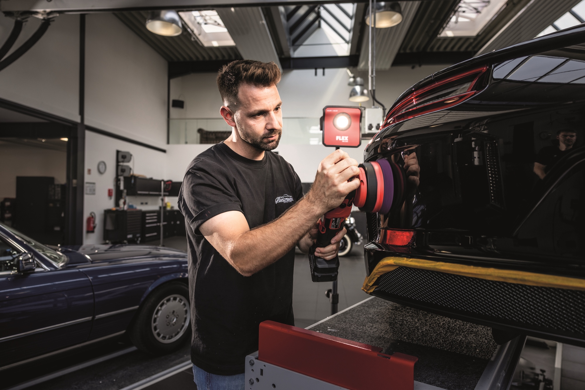 Efficacité maximale en une seule étape avec le système FLEX 1-Step, avec l’éponge violette et le produit lustrant violet