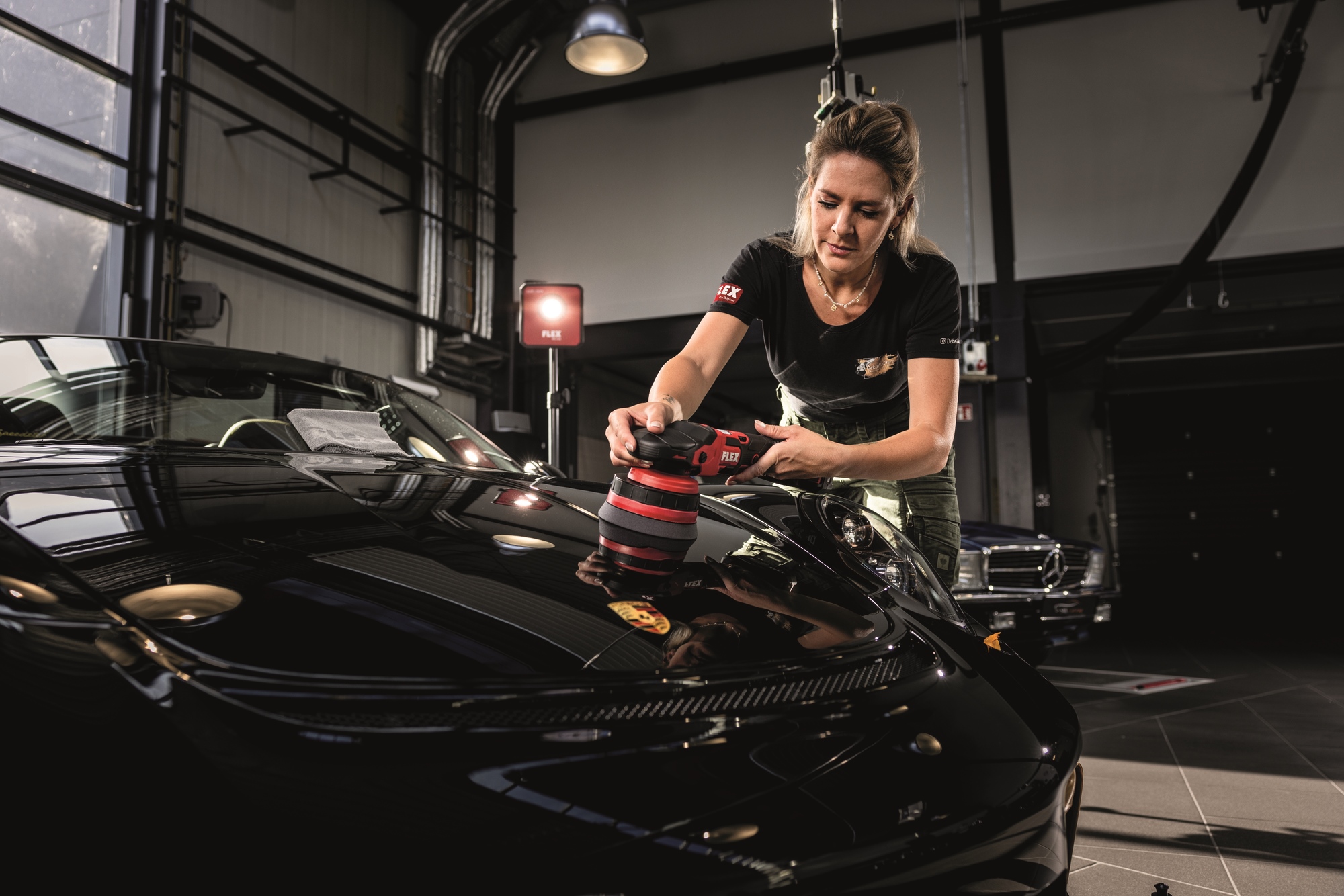 Maximum de brillance en profondeur dans le système FLEX 2-Step, avec l’éponge noire et le produit lustrant noir
