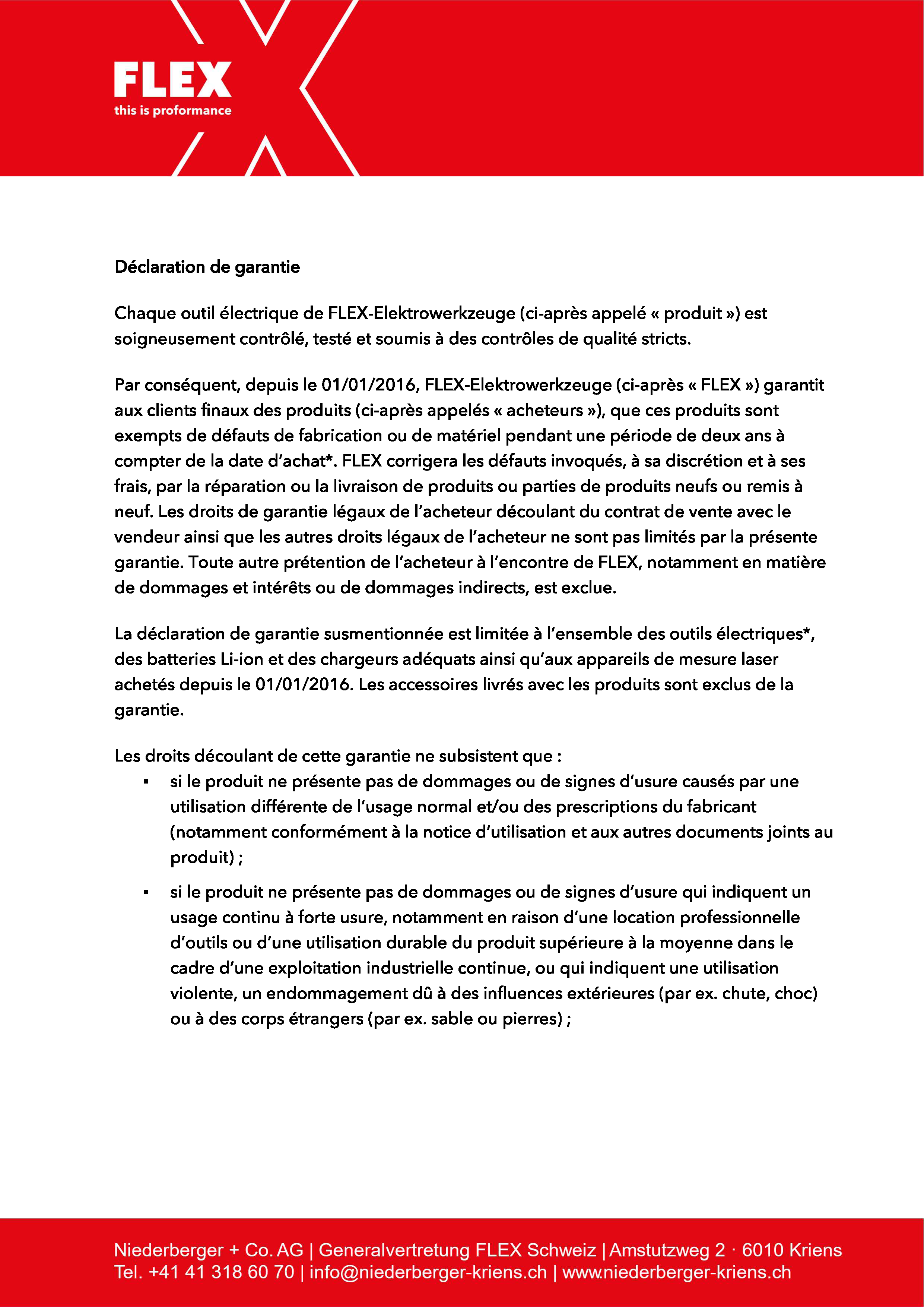 Déclaration de garantie