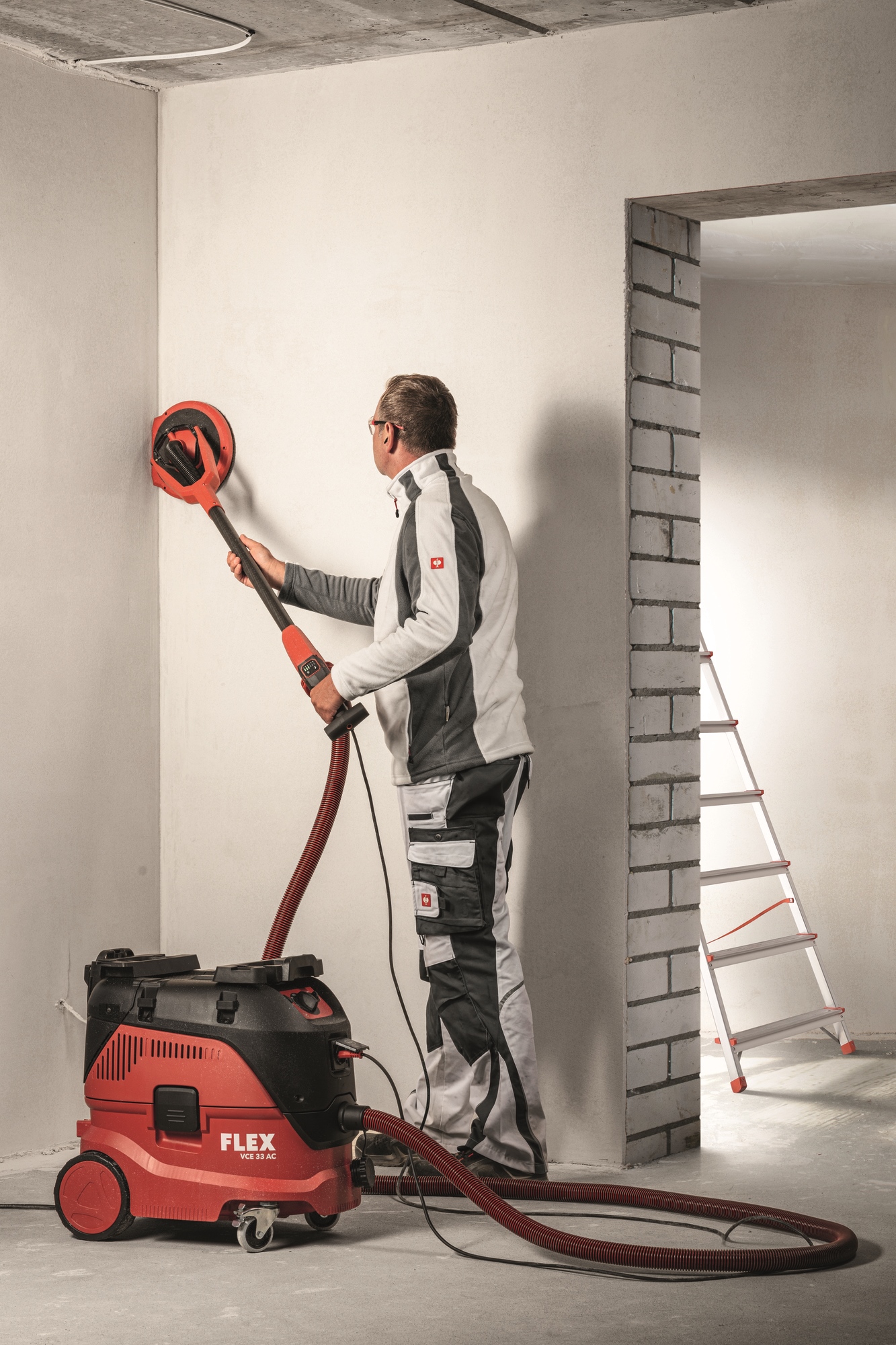 Questa macchina eccezionalmente leggera offre un comfort unico all'utente. La levigatrice per pareti e soffitti è perfettamente bilanciata e offre una guida perfetta perché il peso è distribuito uniformemente sulla levigatrice. Il tubo di guida ergonomico in fibra di carbonio e l'inserto Softgrip sull'impugnatura principale e su quella a vanga la rendono estremamente comoda da usare.