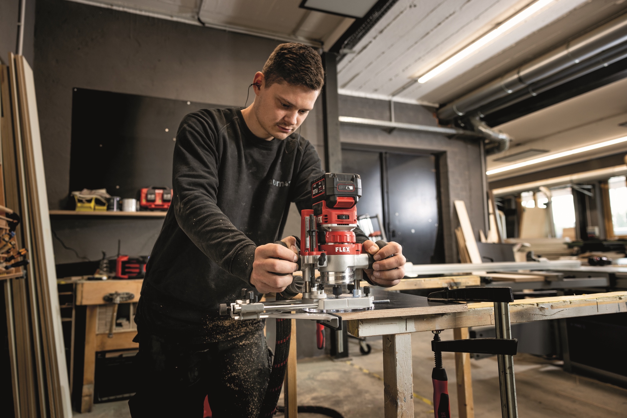 Per una moltitudine di applicazioni nella lavorazione del legno, nella ristrutturazione, nell'edilizia a secco e nella produzione di stampi. Fresatura di giunti angolari, giunti, arrotondamenti/contorni con l'ausilio di dime, rifresatura di profili laminati. Fresatura di bordi in legno massiccio, incavi e scanalature con l'ausilio di una dima e di un anello di guida, produzione di dime per la produzione, ecc.