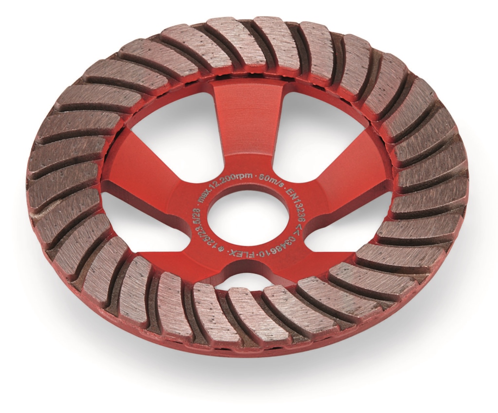Mola Turbo-Jet con rendimento di asportazione ottimale. I numerosi segmenti diamantati permettono un comportamento di rotazione nettamente più silenzioso e un ottimo risultato di levigatura. Ideale per la rettifica in piano su fondi minerali.